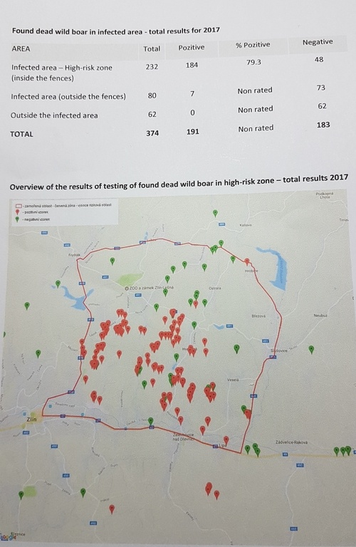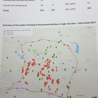 Im gefährdeten Bezirk, außerhalb des Elektrozaunes , wurden von 80 erlegten Sauen nur 7 positiv auf ASP getestet und außerhalb des Infektionsbereiches wurde bei 62 erlegten Wildscheinen kein positiver Fall festgestellt.