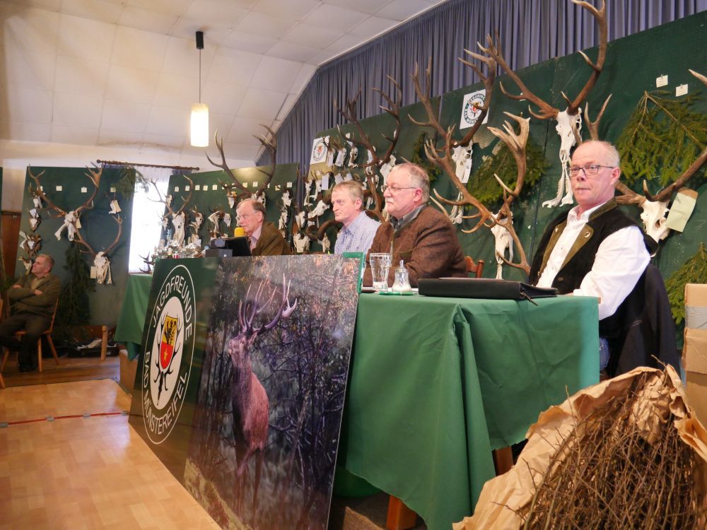 Es wurden Fotos vom ersten Hirsch des Erlegers Jürgen Grunow im Revier von Jochen und Harry Ley gezeigt, die diesen Abschuss im letzten Jahr vergeben hatten.