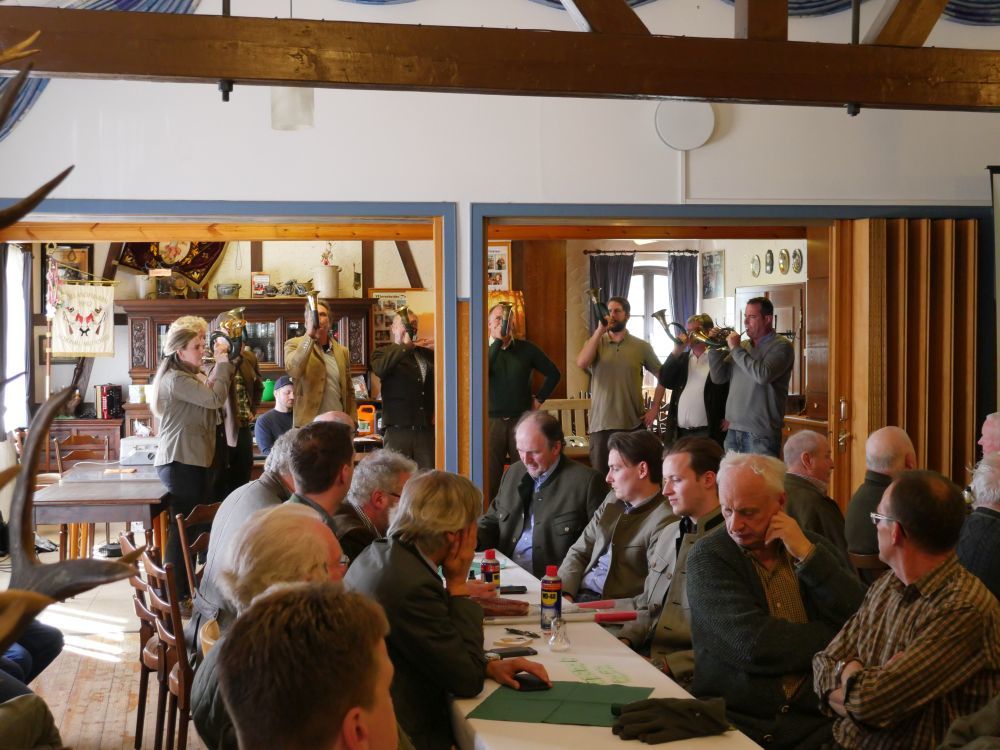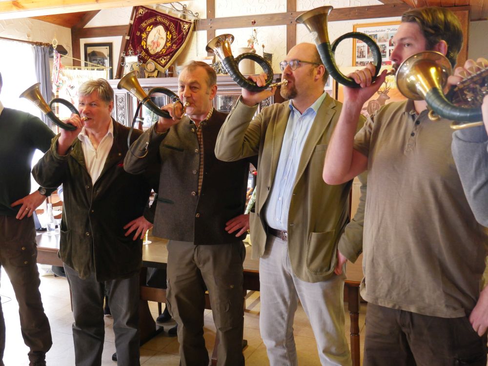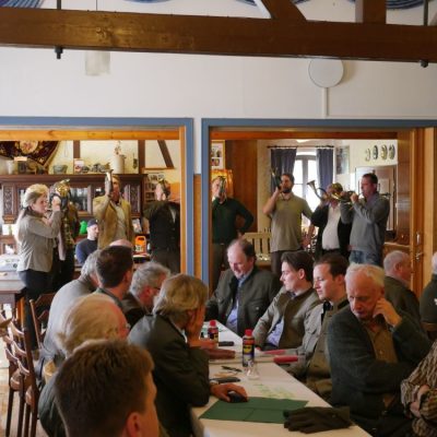 Zunächst aber hörten wir das Signal Begrüßung, dargeboten von den Bläsern des Hegeringes .
