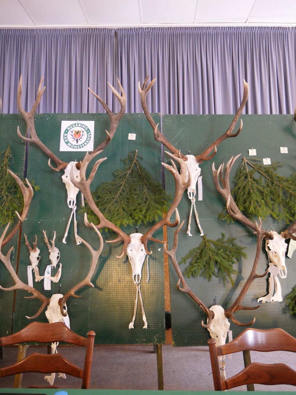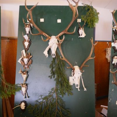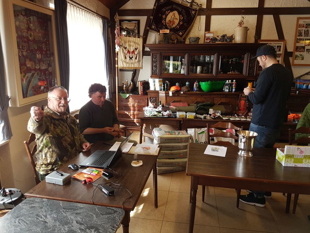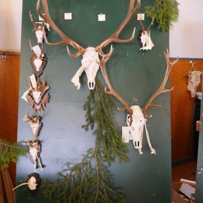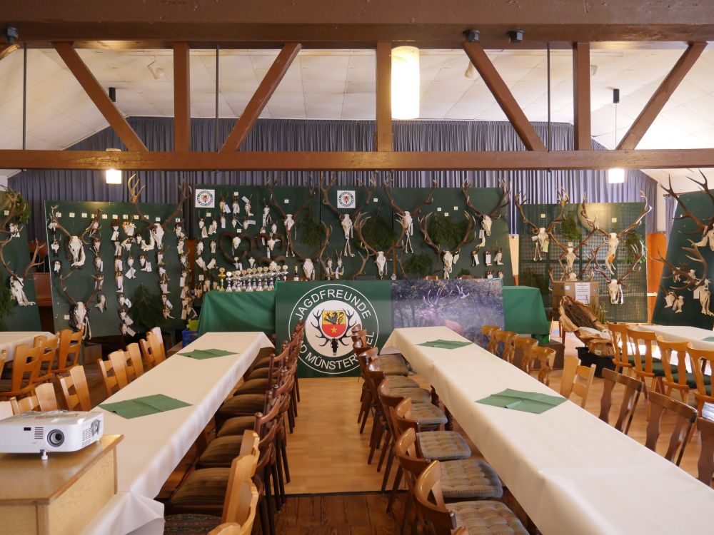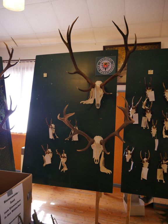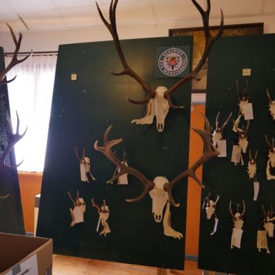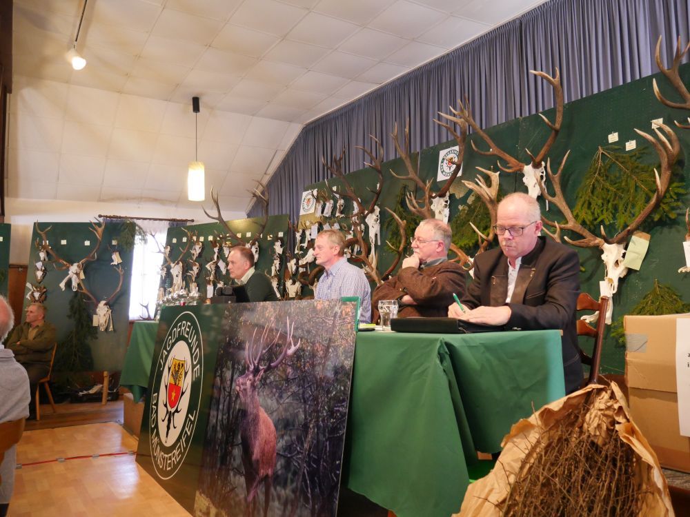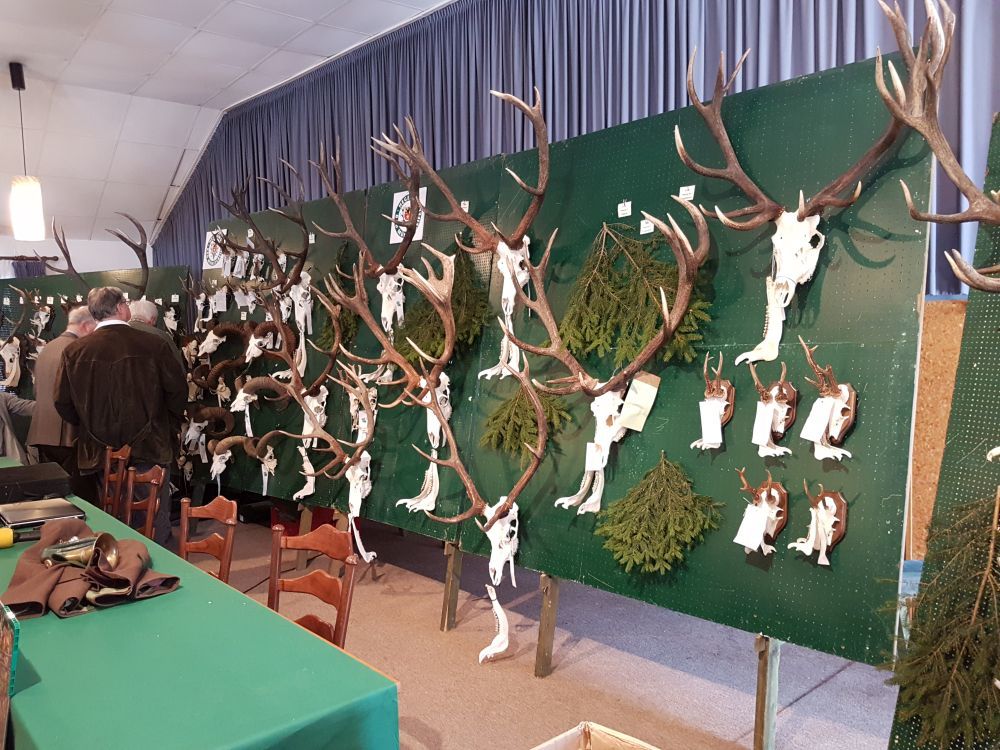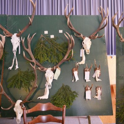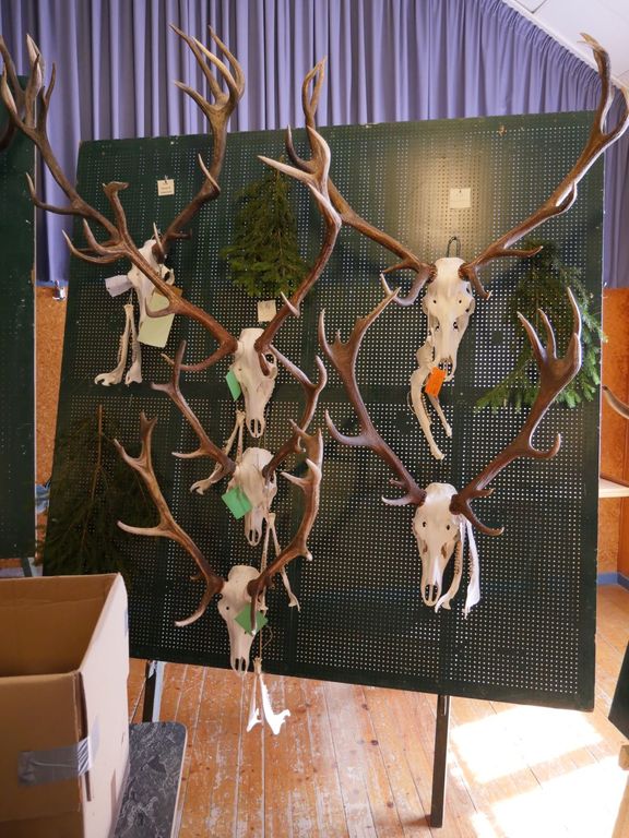 Am Vormittag wurden über 100 Hirschgeweihe durch die UJB des Kreises, vertreten durch Herrn Wolfgang Bannert und unseren Rotwildsachverständigen Horst Dürholt altersmäßig erfasst und in ihren Klassen eingeteilt.