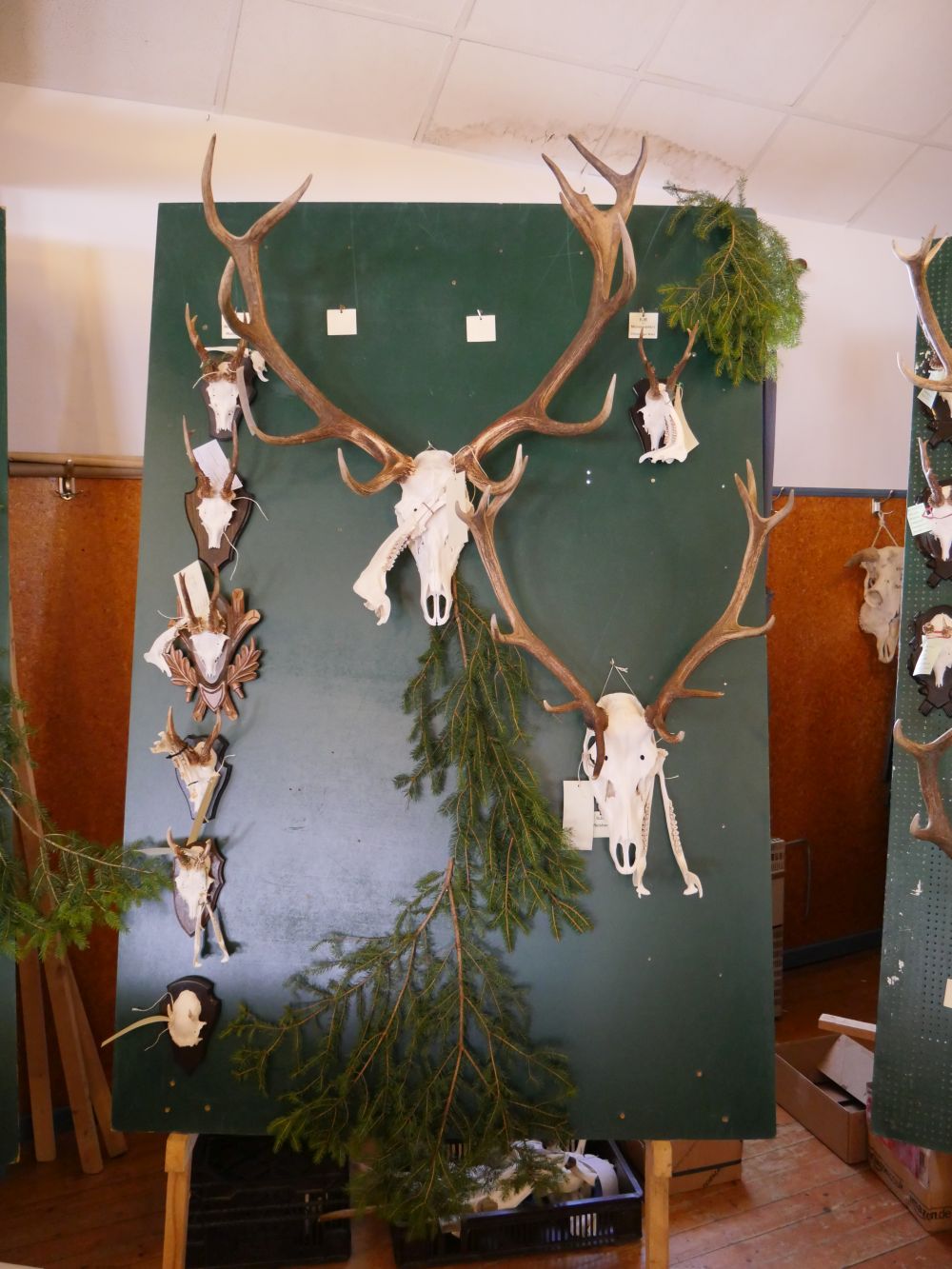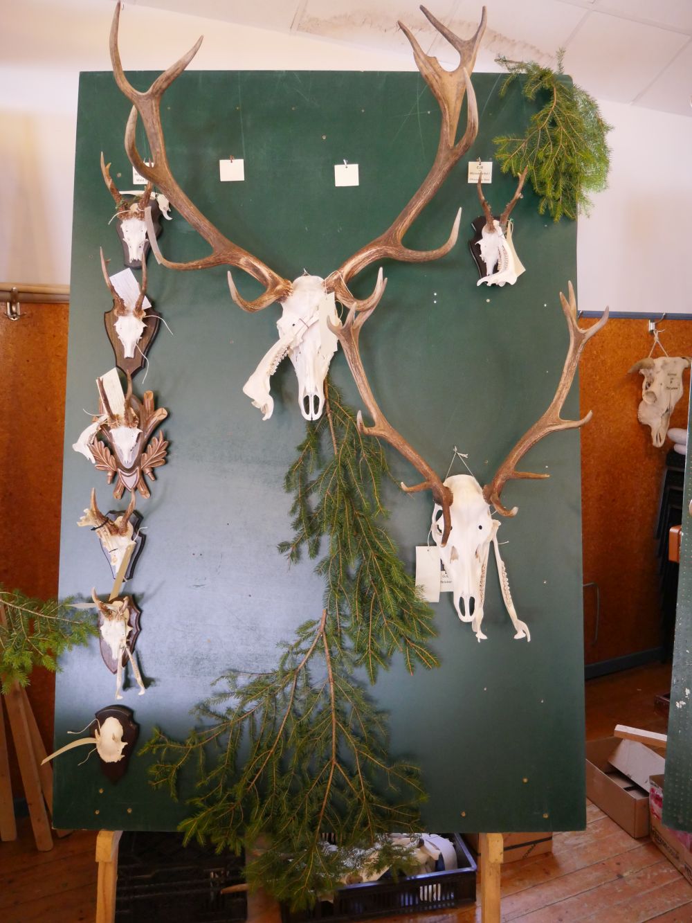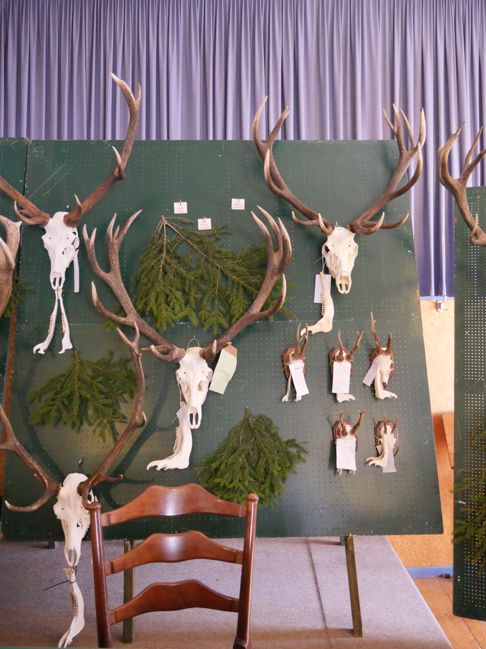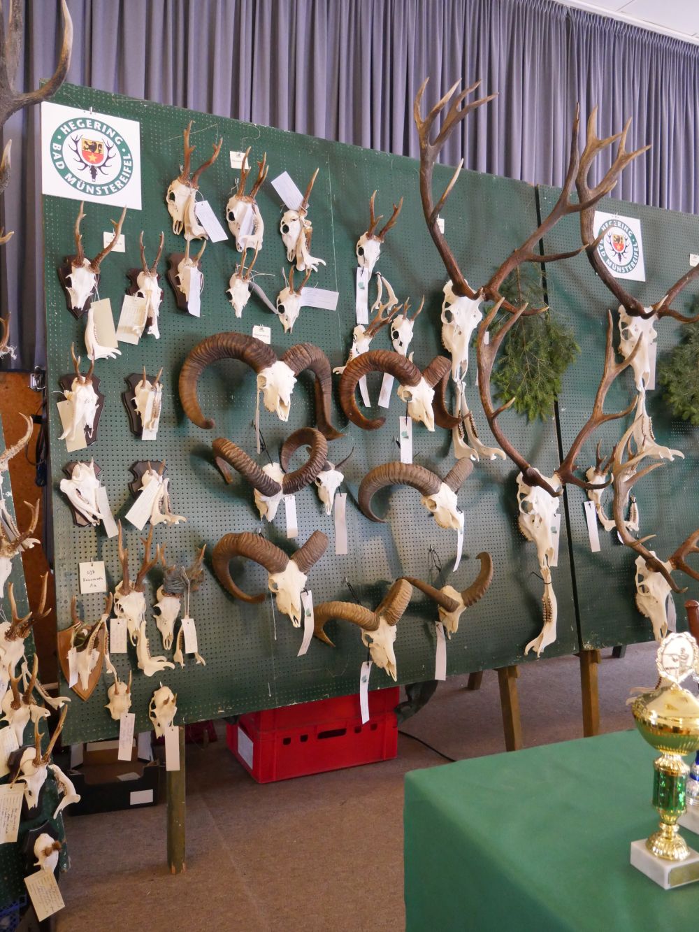 Am Vormittag wurden über 100 Hirschgeweihe durch die UJB des Kreises, vertreten durch Herrn Wolfgang Bannert und unseren Rotwildsachverständigen Horst Dürholt altersmäßig erfasst und in ihren Klassen eingeteilt.