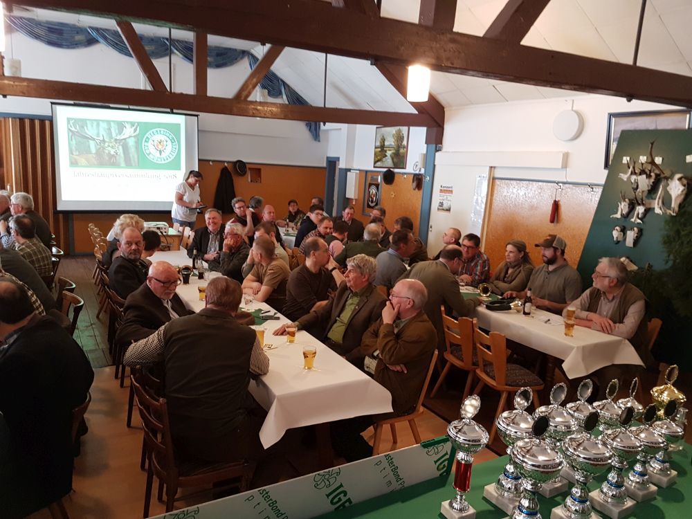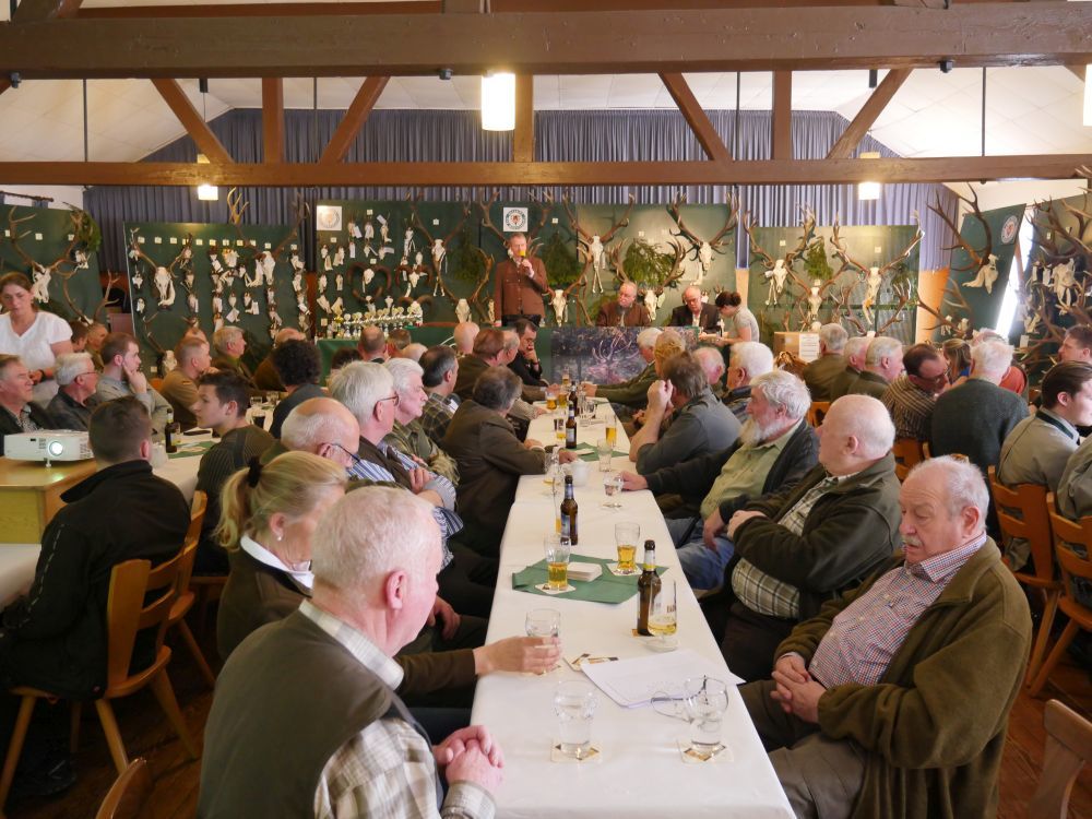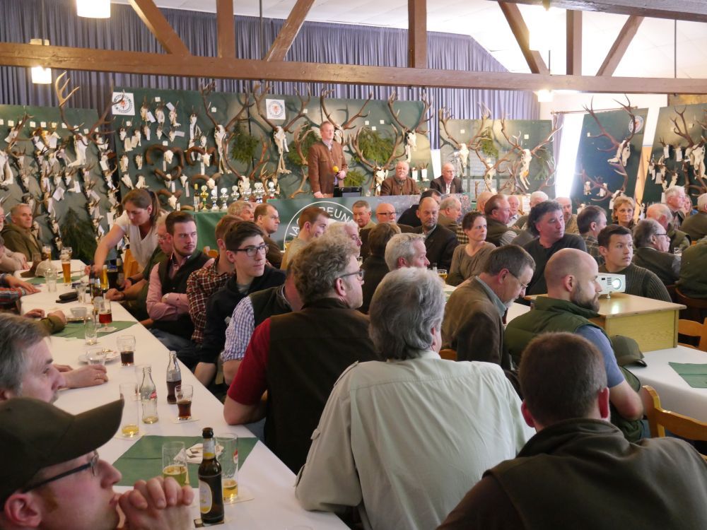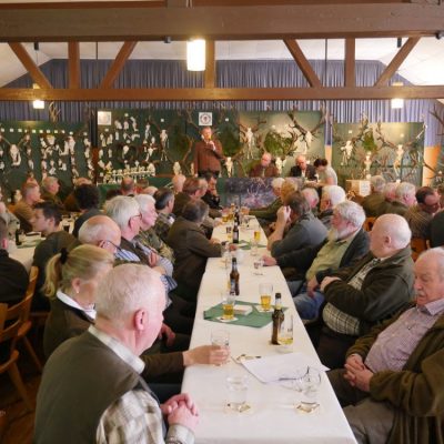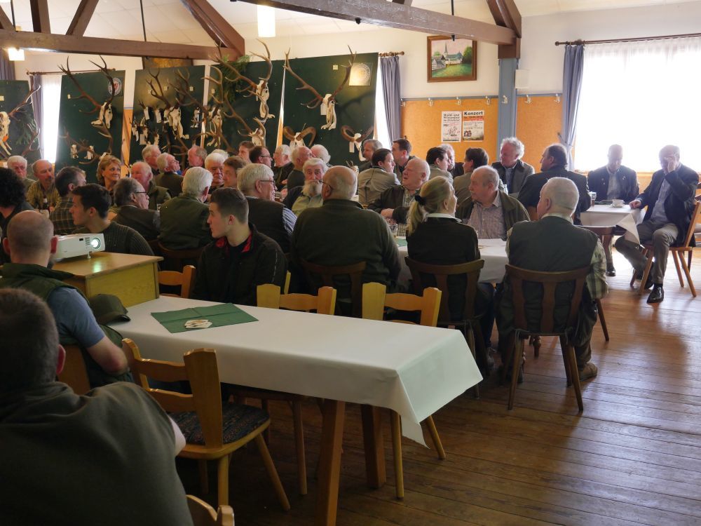 Pünktlich um 14 Uhr eröffnete der Vorsitzende Ferdi Ohlert die Versammlung im „ausverkauften“ Saal der Gaststätte Prinz in Mutscheid. Über 100 interessierte Jäger und Gäste waren gekommen, um den Beiträgen zu lauschen.